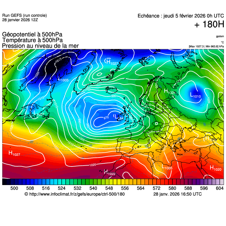 Analyses Synoptiques (BIM) 27/01 : Une fin janvier et un début février très perturbé : Situation actuelle : Un vaste complexe dé... 18/11 : Situation actuelle : Une vaste zone dépressionnaire est en place entre la Grande-Bretagne et la S... 10/11 : Situation actuelle : Le bassin atlantique nord se trouve actuellement sous un cas typique de stru... 26/10 : Situation actuelle : Un vaste système dépressionnaire, consécutif avec l'importante activité... 17/10 : Situation actuelle : La situation synoptique commence a bien changer sur l'atlantique, alors ...