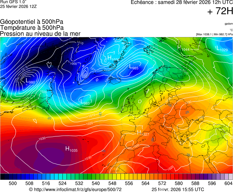 Analyses Synoptiques (BIM) 02/02 : Poursuite d'un temps perturbé et doux pour la saison : Situation actuelle : Le bassin atl... 27/01 : Une fin janvier et un début février très perturbé : Situation actuelle : Un vaste complexe dé... 18/11 : Situation actuelle : Une vaste zone dépressionnaire est en place entre la Grande-Bretagne et la S... 10/11 : Situation actuelle : Le bassin atlantique nord se trouve actuellement sous un cas typique de stru... 26/10 : Situation actuelle : Un vaste système dépressionnaire, consécutif avec l'importante activité...