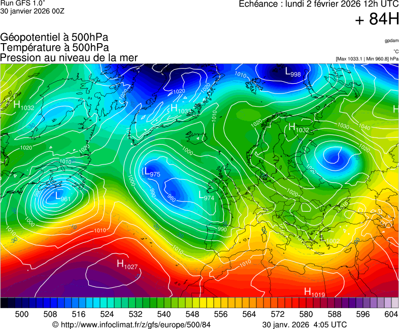 Analyses Synoptiques (BIM) 27/01 : Une fin janvier et un début février très perturbé : Situation actuelle : Un vaste complexe dé... 18/11 : Situation actuelle : Une vaste zone dépressionnaire est en place entre la Grande-Bretagne et la S... 10/11 : Situation actuelle : Le bassin atlantique nord se trouve actuellement sous un cas typique de stru... 26/10 : Situation actuelle : Un vaste système dépressionnaire, consécutif avec l'importante activité... 17/10 : Situation actuelle : La situation synoptique commence a bien changer sur l'atlantique, alors ...