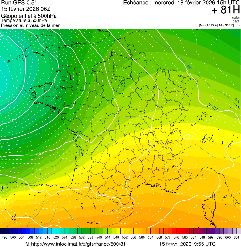 AROME 2.5kmGFS France 0.5 et 0.2°GFS Europe 1.0°ECMWF-CEP EuropeEnsemble GEFSEnsemble CEP